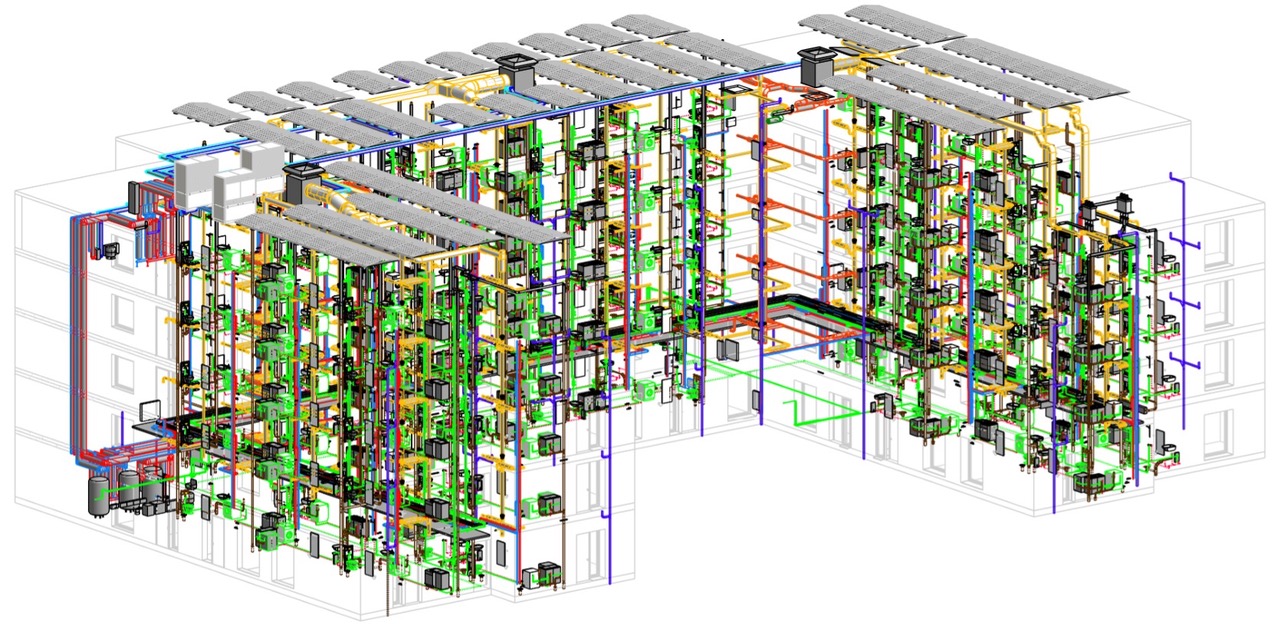 Diverse technische Besonderheiten prägten dabei unsere Arbeit per Revit/3D – vor allem mit Blick auf die Nachhaltigkeit der Gebäude inklusive:
